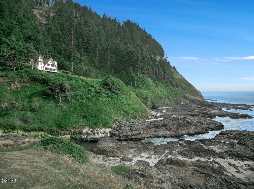 Welcome to the captivating Cleft of The Rock Lighthouse, nestled on the stunning oceanfront of Yachats, Oregon. This exceptional property offers a truly unique opportunity to own a home with a beautiful lighthouse, surrounded by two acres of coastal paradise. With two bedrooms and two bathrooms, this custom-built residence provides a comfortable and cozy living space. The open floor plan allows for seamless flow between the rooms, while large windows invite natural light and breathtaking views of the ocean into every corner of the home. The exterior of the property is a true standout feature, with the lighthouse serving as a majestic centerpiece. Imagine the enchanting sight of the lighthouse casting its warm glow across the landscape, creating a magical atmosphere day and night. a generous two-acre lot, this property provides ample space for outdoor activities, relaxation, and enjoying the beauty of the surrounding nature. Immerse yourself in the coastal serenity as you explore the rugged coastline, indulge in picnics by the sea, or create memories with loved ones in the vast outdoor space. While the home is truly one of a kind, it's worth noting that the interior could benefit from some updates and personal touches. This presents an exciting opportunity for the new owners to put their own stamp on the property, transforming it into their dream coastal retreat. Located in the charming town of Yachats, residents can experience the perfect balance of tranquility and convenience. Enjoy the seclusion of oceanfront living while still being within reach of local amenities, dining options, and recreational activities. Don't miss your chance to own a slice of coastal heaven with a beautiful lighthouse as your centerpiece. Embrace the potential of the Cleft of The Rock Lighthouse and turn it into your own seaside sanctuary. Schedule a viewing today and let your imagination soar!