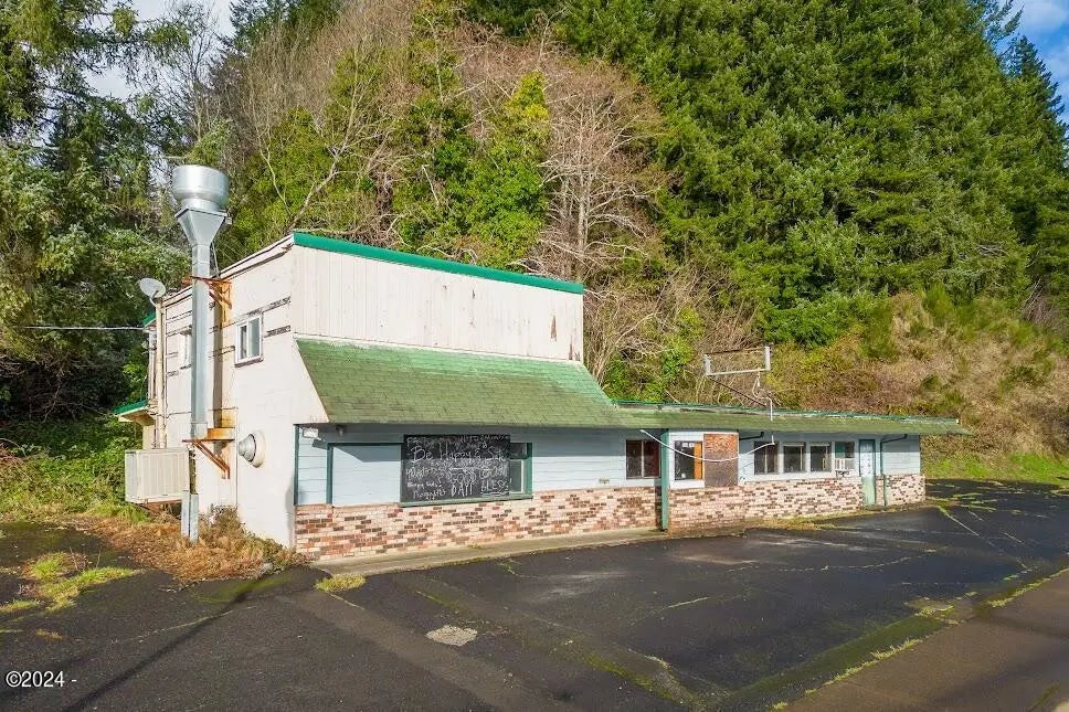 Great development opportunity located only six miles from Newport on the Oregon Coast. Two parcels totaling .64 acres with Hwy frontage. Current building was a long term restaurant. Some stainless and walk-in in place. (Condition not guaranteed). A 2 bedroom apartment on top. Ideal for live/work situation or just investment. Buyer to complete their own due diligence relating to approved uses with city. Also, prelim plans for an 18 unit 2+2 available. *** This property is subject of an auction***