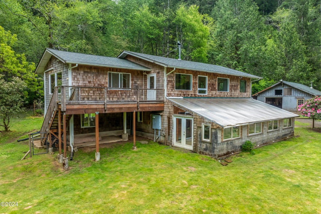 Peaceful & serene location on the Yachats River, this small farm property, with gated entry, is ready for your vision & enjoyment. Country living & only 9 miles to beach & town. Two ductless heat pumps for heating/cooling efficiency, a woodstove when power goes out, & a free-standing sauna hut to soothe & relax. The enclosed porch/sunroom provides planting space for more delicate plants & passive solar benefits for the home. Large garage-shop with loft storage, greenhouse, fenced gardens, chicken coop, small pastures for animals, fruit trees, & more! The home is served by a well with filtration & UV treatment. The roof & siding have been replaced over the last several years. Sit on the upstairs balcony with your coffee & enjoy Nature's beauty. Trees, fresh air, & quiet. Escape here
