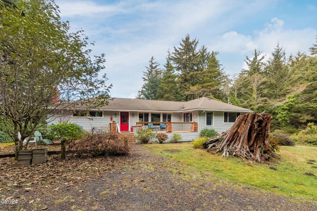Recent Price Adjustment! Beautifully & Freshly Painted!! From the moment you enter the long tree-lined driveway, as you travel down to the expansive homesite, you will sense the enchantment of this property! Visitors and owners alike use the same word to describe its beauty and sense of calm. ''Magical...'' The double lot, which measures over an acre and a half, provides a gorgeous, tree filled barrier between the home and the Oregon Trail highway. The house and the extra lot feature open and gracious outdoor spaces, surrounded by towering trees and whispery breezes, with your own charming deeded path to the beach! The beauty of this home is the warmth on the inside and the view and access to nature and the mighty Pacific on the outside. Whales swim by, and bald eagles soar by and roost in the nearby treetops as you watch from your living room, and the private beach is a haven for curious and playful seals all year long Take a one minute walk down to the completely secluded beach via the deeded and maintained pathway, sit with a glass of wine to watch the waves crash upon the stone formations and the spectacular sunsets, or walk up and down to explore the tide pools as the tide rolls out and gather shells from the sand. Family bonfires are a must! Trails and hiking paths surround the property allowing for leisurely strolls after coffee in the morning or any time during the day! Inside, the generous open living spaces are perfect for entertaining and meaningful family and friend gatherings. Cozy up in the large great room with the unique cyclone fireplace and relax in the sense of home as you enjoy your view of the thundering Pacific and majestic forest. Many recent updates include beautiful solid interior doors and updated lighting and paint throughout the entire home. The newly refreshed kitchen includes new quartzite countertops and huge copper sink, new dishwasher and trash compactor, and a coffee bar! The home has been re-furnished with custom leather couches in the great room, among other things, all of which may be included in the sale.