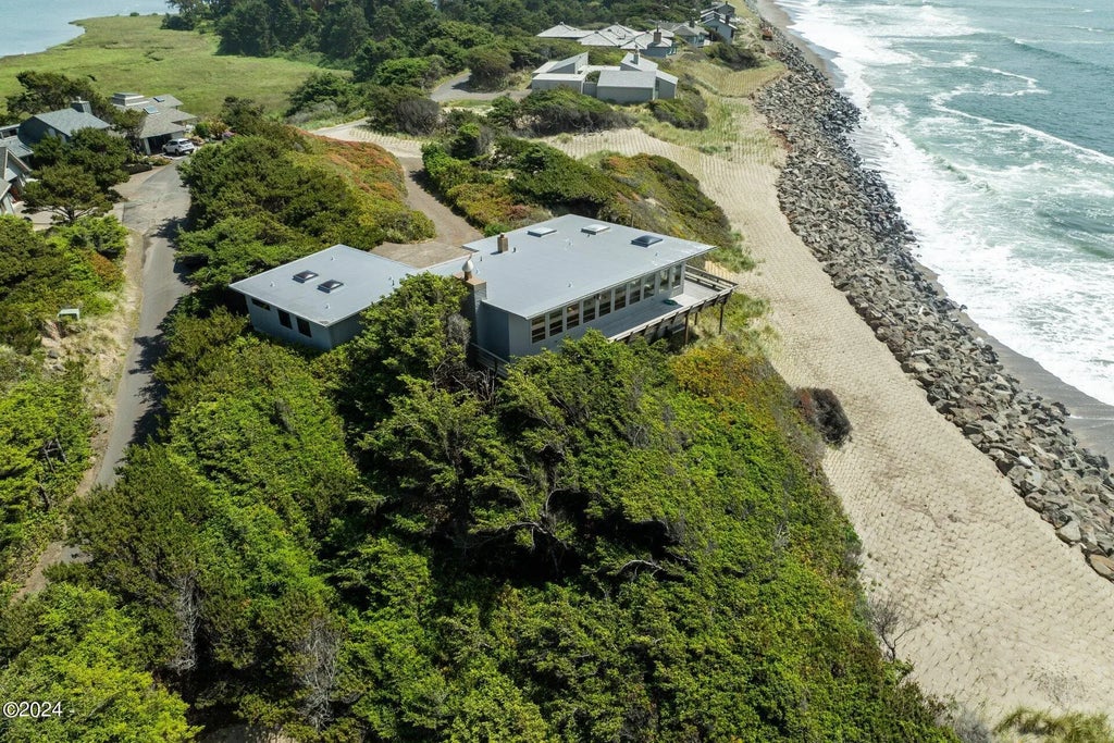 Spectacular oceanfront on a bluff with stunning views. Recent 33 foot oceanside seawall of boulders along this 1.71 acres means you can enjoy the views with security from erosion. Perched high above the waves, this property captures the views with walls of windows to watch beautiful sunsets, wildlife and of course the whales! This mid-century modern gem is a true beach house with a casual elegance of a great fireplace, high wood ceilings and wood walls throughout. The main floor deck wraps around the house with seating for exceptional viewing. The added sun room also wraps around the interior with walls of windows and extends the front entry and dining room with even more usable space. The garage has studio space with ocean views. Salishan is a gated community with many amenities. There is a bedroom on the main floor and two more below and a nook area that canbe closed off as a 4th bedroom. All lower bedrooms open to the family room with access to the lower patio. The garage will surprise you with beautiful views and the second bay is closed off and used as an artist's studio or a workshop with a wall heater. This lot was one of the first picked within the community and originally was 3 sites melded into one large private spectacular site. There is nothing on the coast that equals this spacious perch. The home is a gem awaiting your personal touch or enjoy as is. The sunroom was an addition in the 90's. Salishan is a gated community west of Hwy 101 on the Siletz Bay with a clubhouse and outdoor pool (well heated throughout summer), access and memberships to a top golf course, tennis center or outside courts with pickleball, play area for kids and so much more. Enjoy the restaurants, hiking, shopping, kayaking, windsurfing, and fishing to name a few. The lodge offers an aerial park and surfing too! Salishan is a very special community within a wildlife refuge created by master developer John Gray and architect John Storrs. Enjoy all it has to offer when you become an owner here.
