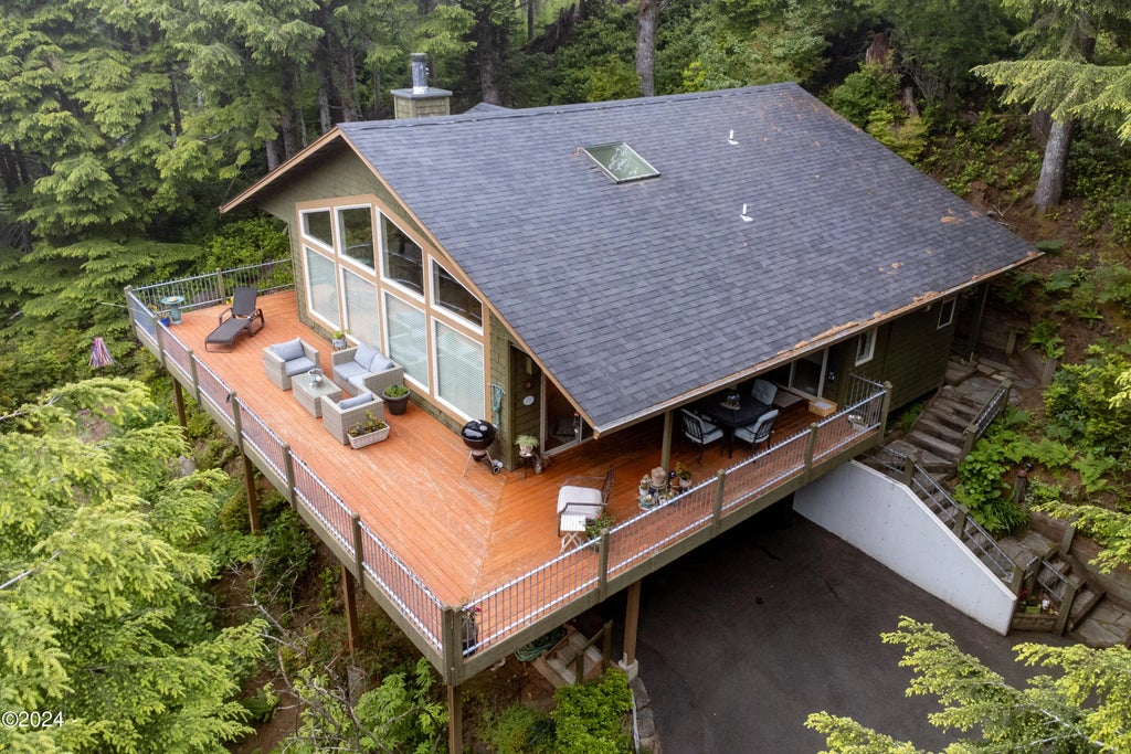 Main level living with Golfing on your mind! Located directly in the middle of the award winning Salishan Golf course East side. Tucked into the trees surrounded by lush evergreen, common bird and wildlife. 2 bedroom 2 bath vaulted ceiling open floor plan home. Everything you need is on one level. Bright light clean and cozy. Smart easy open living floor plan with full wrap around deck and two covered porches for outdoor dining and entertainment too! Gated community for privacy and safety, tennis courts indoor and outdoor, play area for children, walking trails, volleyball, and this is a designated Tsunami safe zone for the county! All this just minutes from Lincoln City shopping, movies and Casino or hiking, kayaking, surfing, fishing, Golfing, Golfing! Win! Win!
