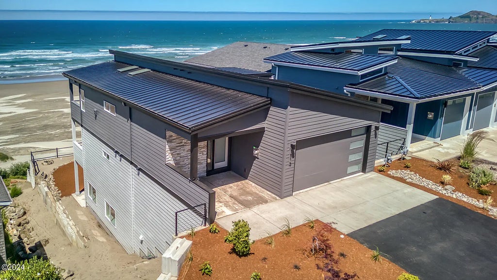 Experience breathtaking views, private shared beach access, and refined coastal living at 1515 NW Spring St in Newport. This 4-bed, 3.5-bath architectural masterpiece offers three oceanfront balconies, a gourmet kitchen with Thermador appliances, a 6-burner gas range, and waterfall quartz island. Two oceanfront primary suites feature spa-like baths, cedar-lined closets, and private balconies. Enjoy a spacious family room with wet bar, gas fireplace, oceanview patio, and elevator access. With a two-car garage, central vacuum, and elegant modern finishes, this home blends luxury and nature. Located steps from Nye Beach shops, dining, and Agate Beach Golf. Now priced 300K below original—don't miss this extraordinary coastal retreat. Interior Features