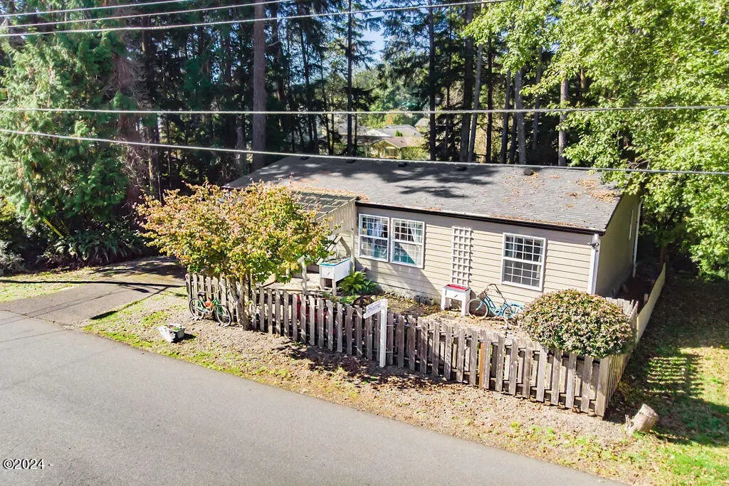 Picture Perfect and Affordable! Centrally located. 3 BR, 2BA. Huge suspended 8'x12' covered deck with forest view of natural private setting. Bathroom updates in 2019; new title countertops, floors, tubs. New roof, gutters w/guards in 2022. Kitchen features: granite title counter-tops with aluminum edge, upgraded refrigerator. Outdoor shed for storage. Walk to Lincoln City Outlet Mall or bus stop. 1 mile to beach access! GREAT STARTER HOME AT THE BEACH! Financing available to qualified Buyers. Seller willing to some Seller Carry.