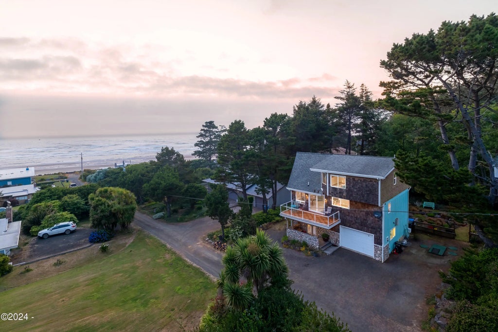 This beautiful 1,850 sq ft custom-built home is situated just a few houses from the beach and offers views of breaking waves from every room. The house features large windows to the south and west; if the sun is up, it is shining on this house. The lower level with a family room, half bath and wet bar provides plenty of space for guests Additional features include vaulted wood ceilings, central vac, custom lighting, hot tub, a commodious master bedroom with a soaking tub and tiled shower, a separate sunroom/studio in the beautifully-planted back yard, and a gourmet kitchen with granite countertops, hickory cabinets and stainless steel appliances. Enjoy watching the gorgeous sunsets from inside or while sitting on the large S-facing deck or watch the breaking waves any time you like. Custom Built Engineered home with Beach Access! Master Bedroom Suite with incredible Views heated floors, walk-in closet, Jacuzzi tub, walkin shower with custom tile. Gourmet Kitchen with Granite, gas cook top downdraft, pantry,custom lights. Custom Hickory cabinets Large rooms with large windows Vaulted knotty cedar ceilings Soundproofed east side walls Ductless heat pump Family room with wet bar Great southern exposure for Sunshine all year! Custom Sunroom