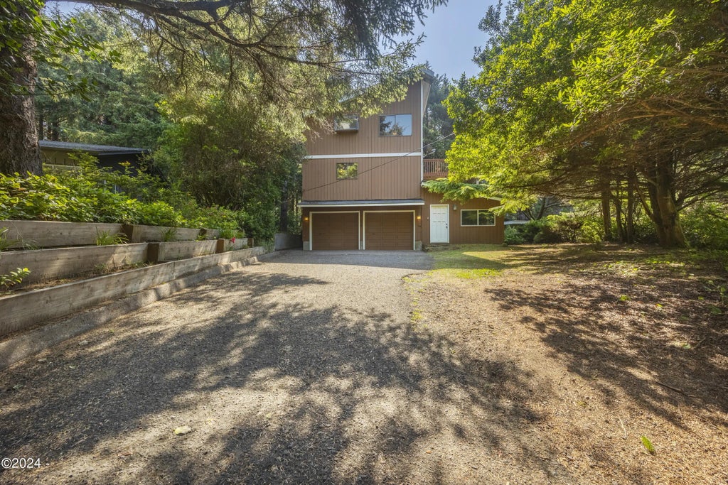 Find yourself here at the beach! Gather your favorite peeps and head to the sand. Beach access is right at the end of the block. Enjoy gorgeous ocean views from this mid-century modern beach home. The main living area offers two full bedrooms and bathrooms and the downstairs addition with half bath is perfect for guests or a hobby area. Half acre treed lot provides a sense of privacy and space. Extensive deck is perfect for outdoor entertaining or a quiet morning coffee. Some room photos are virtually staged.Low fee HOA.