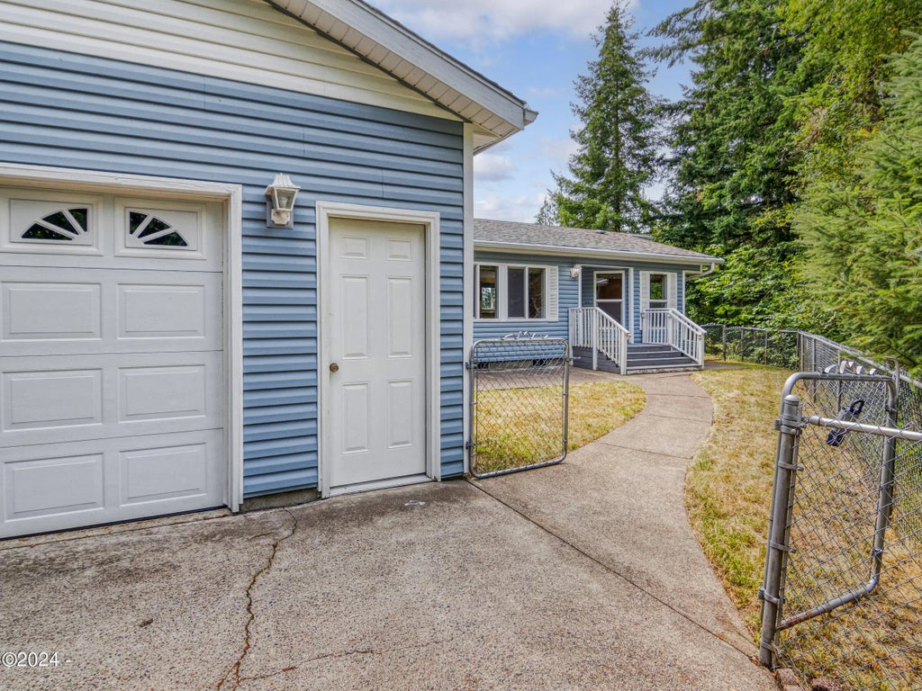 Nestled among mature trees on a serene, private corner lot, this charming 3-bedroom, 2-bathroom single-level home offers the perfect blend of country living with the convenience of being close to downtown. With 1,576 sq ft of comfortable living space, this property sits on a .21-acre lot, providing ample room for outdoor enjoyment and privacy. The home features a spacious, oversized 2-car garage equipped with a handicap wheelchair ramp. The fully fenced yard offers plenty of space for gardening, pets, or simply enjoying the tranquility of nature. Inside, the large kitchen is a chef's delight, boasting generous cupboard and cabinet storage, expansive countertops, and a cozy breakfast nook that offers a picturesque view of the surrounding trees are an ideal spot for morning coffee.