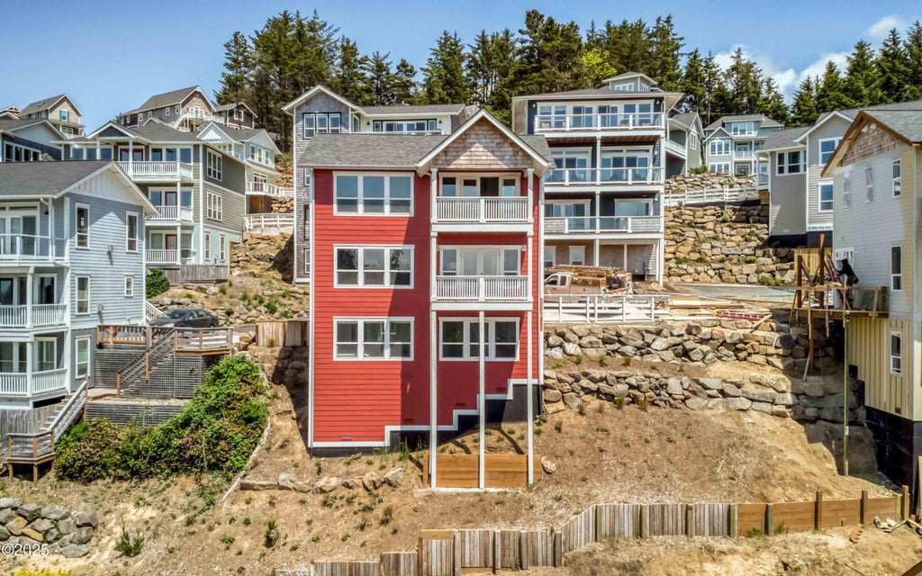 Experience the pinnacle of refined coastal living with this exquisite Olivia Beach residence, where every detail is crafted to perfection and every level offers breathtaking Pacific Ocean views. Completed in 2022, this custom-designed home masterfully combines elegance with low-maintenance durability, creating an ideal sanctuary for relaxation and a premier investment opportunity in the vacation rental market. Spanning 2,228 square feet across three impeccably designed levels, this turnkey, furnished residence exudes sophistication and comfort. The top floor features an open-concept living area with vaulted ceilings and exposed wooden beams, creating a grand and inviting atmosphere. The chef's kitchen is a culinary masterpiece, outfitted with premium appliances including a stove with an integrated air fryer, and seamlessly flows onto a private deck where you can enjoy al fresco dining with a BBQ grill, perfect for entertaining while taking in stunning ocean vistas. The grandeur continues on the main level with an inviting additional living space enhanced by a cozy gas fireplace. The luxurious primary suite offers a serene retreat, boasting a spa-like bathroom with upgraded marble tiles and elegant finishes, providing the ultimate in comfort and style. Descending to the lower level, two generously sized bedrooms, each with its own en-suite bathroom, ensure privacy and convenience. One bedroom is thoughtfully designed to accommodate family and guests with utmost comfort. Throughout the home, high-end details elevate its appeal. Custom cabinetry handles and a stunning powder room sink from Restoration Hardware add a touch of opulence, while wooden floors and a meticulously crafted staircase enhance the overall elegance. An upgraded front door further contributes to the home's stately presence. Olivia Beach offers more than just a picturesque coastal setting; it is a vibrant community crafted for relaxation and recreation. Stroll through charming Wisteria-covered walkways, let children explore the expansive park with its play structures and fire pit, or enjoy a friendly volleyball match on the sandy court. During the warmer months, take a refreshing dip in the seasonal heated pool or stay active in the pool house's well-equipped workout room, complete with modern fitness amenities. This exceptional residence not only provides a luxurious living experience but also serves as a gateway to creating cherished family memories and enjoying coastal living at its finest.