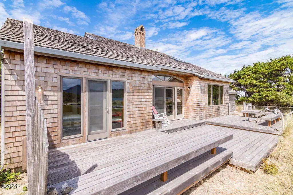 Salishan ''Timberframe'' design home nestled on the Siletz Bay w/ tranquil views of the migrating birds including herons & snowy owls when they land on the Lagoon. Perfect size for a get a way or full time living with 2 bedrooms, loft area, 2 bath rooms, open living room, kitchen and dining area. Lots of natural light throughout. Custom corner masonry fireplace as focal point in living room. Other features include skylights & deck access from both living area & bedroom. Salishan boat launch closeby. "Timber frame construction is one of the few natural building materials & has been used for hundreds of years. It has a lot of advantages & generally timber is non-toxic, does not leak chemical vapour into the building and is safe to handle and touch. It also means that as timber ages, it does so naturally."