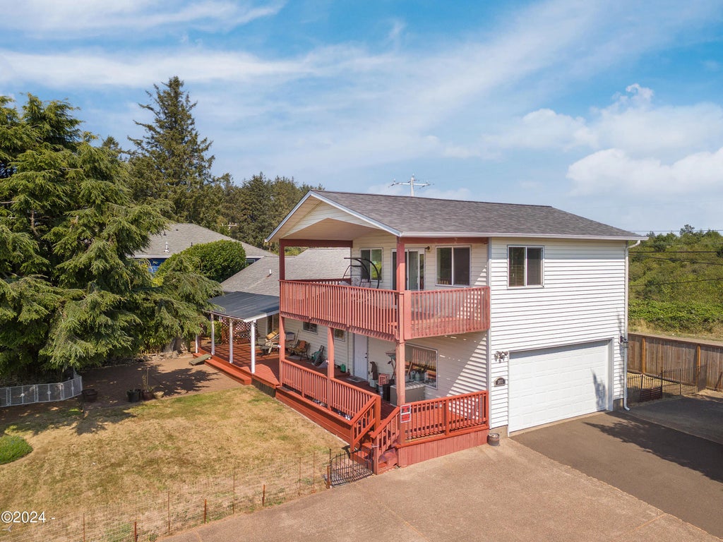 Ocean Views! Hot New Price! A Spacious Gem Full of Potential! This charming home features a large primary suite addition above a double car garage, offering breathtaking views from the oversized covered deck. Nestled on a well-maintained, expansive fenced yard, this property blends classic 1948 architecture with modern updates, all at an attractive price. The oversized lot provides additional off-street parking and includes a storage shed. Enjoy a fantastic location just moments from the shopping district and a short stroll to beach access on 50th Street. Recent updates include a new furnace, washer and dryer, and kitchen range. Don't miss out on this opportunity! Call today to schedule a viewing. Lincoln City boasts 7 miles of beautiful beaches, making it the perfect place to call home!