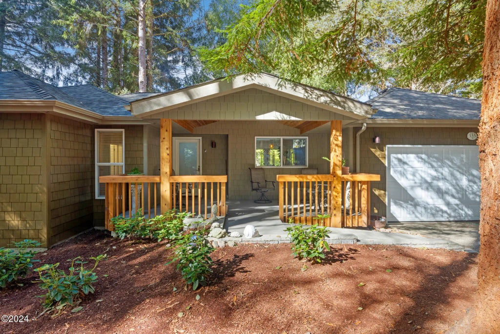 Welcome to your fully remodeled and newly landscaped home in the coveted Little Whale Cove community (LWC). The front and back yards have been beautifully landscaped with colorful, fragrant plants and red bark mulch, seamlessly blending with the surrounding natural forest. As you enter your new home, a wide, step-free walkway leads you to a newly built covered front porch, crafted from natural cedar. This spacious porch provides ample room for enjoying rainy days, featuring oversized handrails perfect for plants. It is equipped with electrical outlets and lighting for added convenience. A smart camera doorbell welcomes you through a new front door with obscure glass, allowing light to filter in while maintaining your privacy. The entryway and entire home showcase solid oak floors, while the bathrooms and kitchen feature elegant Carrara-style porcelain flooring. All floors are adorned with crafted wide beveled moldings, and every door and closet is finished with crown posts in each corner. The front room and living area have been remodeled to create an open space concept, visually connecting the kitchen, dining area, and living space. Updated electrical outlets have been installed throughout, along with high-end ceiling fans equipped with remotes and Wi-Fi in both the living room and primary bedroom. The dining area features a stunning hand-blown custom ceiling light from Egypt, and new custom-made blinds complement the freshly painted interior, including the ceilings. The living room is anchored by a high-end "Heat & Glow" gas fireplace, complete with "Mystic Embers," a thermostat, and a blower fan, all remotely controllable. Above the fireplace, there is space for a large (65"+) wall-mounted TV, wired for a clean look with no visible plugs or cables. A bank of newly crafted deep drawers next to the fireplace/media center offers ample storage. Custom coverings on all skylights allow you to block out light for special movie matinees, while additional custom cabinets above the entry and living room closets provide extra storage. All interior doors are custom-built with obscure glass to match the front door, enhancing the natural light throughout the home. Even the hinges and door handles have been upgraded to stainless steel for a cohesive, modern touch. Enter the kitchen through the newly laid Carrara-style porcelain floors. The kitchen has been completely remodeled with custom cabinets featuring seeded glass doors and matching stainless steel handles. The countertops are all new quartz, complemented by a stylish subway tile backsplash that extends to the cabinets. All appliances are new stainless steel; the high-end French-door Bosch refrigerator, KitchenAid stove, and microwave are included. The microwave vent has been remodeled to vent outside through the roof. The kitchen also features a high-end stainless steel Kraus sink with a matching faucet and sprayer, along with a new Insinkerator garbage disposal and carousel-style corner cabinets for additional storage. Access the extra-large primary bedroom through a custom obscure glass door. The primary suite features custom built-ins with quartz tops and drawers for storage, as well as a newly constructed (5 x 15 ft) 75 sq ft primary closet that includes a window for natural light, all with matching stainless steel pulls. Several banks of built-in drawers, cabinets, and hanging space complete the room, which also boasts hardwood floors and a floor heating vent. The primary bathroom features newly laid Carrara-style porcelain floors, sliding floor-to-ceiling mirrored doors for additional storage, a high-end Toto toilet, a new shower door, a custom vanity with a quartz top, and a specialty three-way lighted mirror medicine cabinet with ample storage, interior plugs, and USB ports for charging. A new Panasonic bathroom vent has also been installed. Exiting the primary bedroom, you will find the hall bathroom, finished to match the primary bath with Carrara-style porcelain flooring, a three-way lighted mirror medicine cabinet, a Toto toilet, and a quartz vanity, along with a Panasonic fan. The hallway leads to the second bedroom, accessible through the same style obscure glass door or double French glass doors. This room features a closet with storage shelves, finished with the same hardwood flooring and molding. Through the glass French doors of the second bedroom, you can enter the living room. Exit the living room through similar French glass exterior doors onto the newly remodeled and painted back porch. The backyard offers extra privacy, a rarity in Little Whale Cove, and has been newly landscaped to mirror the front yard. The entire property has been surveyed, with property posts indicating an additional 1,000 sq ft of land in the backyard, which can potentially accommodate further expansion if desired. Additionally, the crawlspace has been fully re-tarped and insulated. All heating vents have been inspected and updated, and both the heating system and hot water heater have been fully serviced. The double-car garage features a brand new high-end Electrolux front-loading washer and dryer with storage drawers, as well as a wash sink. Above the garage door hangs a custom ceramic address plaque, signed by the artist. Living in LWC offers a beautiful and natural forest setting with amenities such as an indoor pool, clubhouse, walking trails, indoor and outdoor pickleball courts, and more!