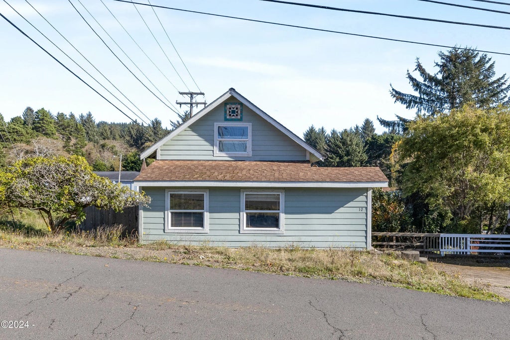 Cute as they come beach cottage with a great location in Depoe Bay! Close proximity to the ocean, harbor, shopping, Coast Guard Base, restaurants, and more. This 2 bedroom, 1.5 bath home has the potential to become a 3 bedroom 2 bath home. Look over the harbor from the expansive deck and the large fenced-in yard with cherry, pear, and apple trees. A new roof was installed in 2020- R-4 Zoning, & a history of being a great LTR property.
