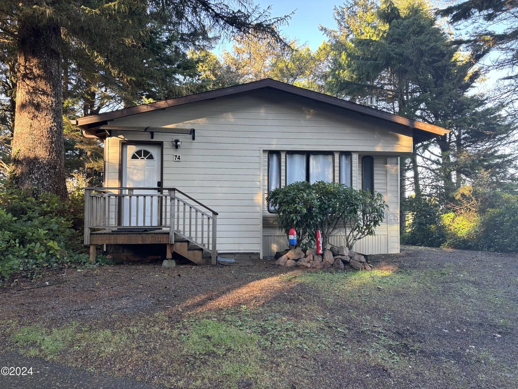 Come find your cozy coastal retreat. Nestled in Willark Pk. 2 miles from the heart of Depoe Bay. Walk into a large open living room with great natural light. Head through the back door where you can find a large deck that is partially covered and hear the ocean waves. Bedroom features a large mirrored closet. Don't miss this welcoming home with stick built add on structure. Which is on its own land and has low HOA fees. Addition was completed in 2017 and features vinyl windows, two skylights and a new composition roof over the whole home. Main living spaces feature new LVP. Ample off street parking and the property also features a tool shed. Furnishing negotiable! On sight laundry room and community center. Buyer to pay 1 percent transfer fee to HOA at closing.
