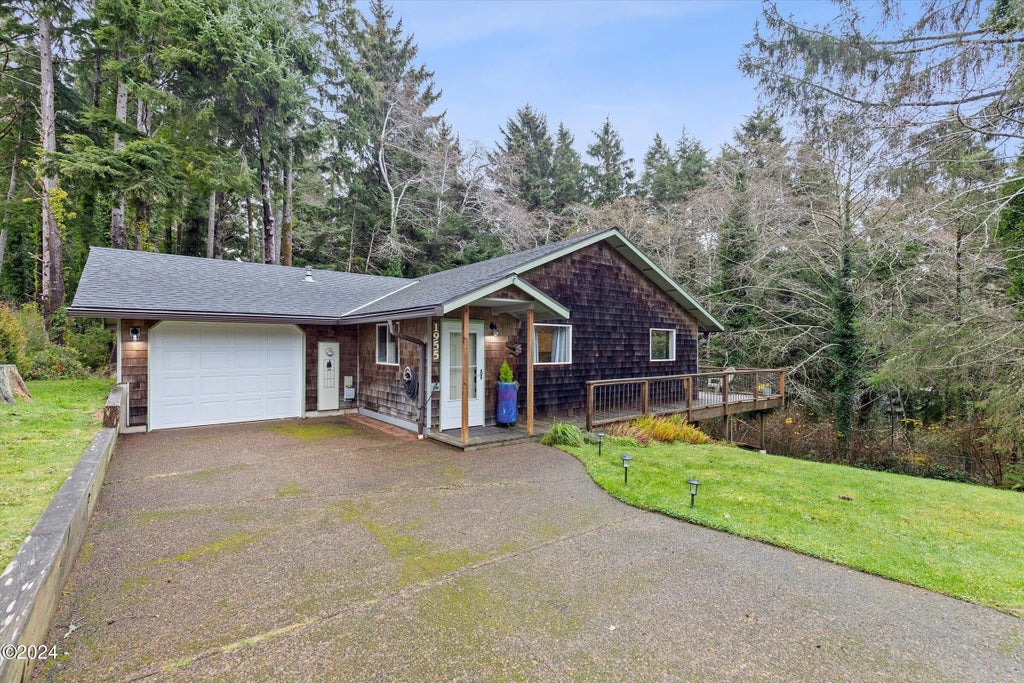 Immaculate coastal contemporary home promises easy one-level living AND additional development potential with the neighboring BUILDABLE LOT INCLUDED in the sale!! Almost 1/2 acre, tucked away on a dead-end street with forest views, this thoughtfully designed home has vaulted ceilings and open concept for an efficient use of space. Wrap around deck is perfect for relaxing and unwinding. It is reinforced and hot tub ready! Slider off the primary bedroom leads to deck. One car attached garage. Located out of the Tsunami Zone and close to Spring Lake Open Space, the Lincoln City Cultural Center, Community Center, beach access, Regatta Park, lake access, shopping, dining and much, much more! This is the only house on the street with city sewer service.