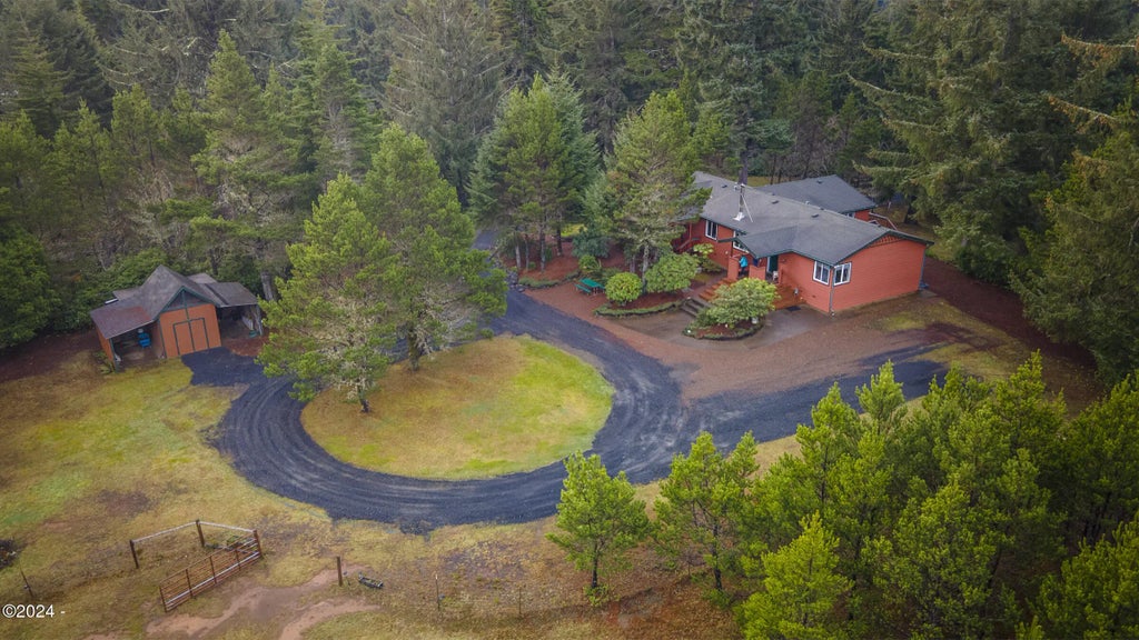 Immaculate 4 bedroom, 2 bath home with approx. 2100 sq. ft of SINGLE LEVEL living space on 5 mostly flat acres located in Seal Rock, Oregon. Vaulted Ceilings with an open floor plan. Certified wood stove. Hardie plank siding, vinyl windows and composition roof. Covered deck to enjoy the privacy and wooded feel even though you are only 5 minutes from the beach. Property has its own pond! Plenty of room for a shop or larger barn. Much more to see!