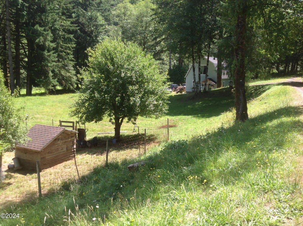 Secluded home and land that is off the grid. 24v battery system, septic, spring provide what is needed. Salmon spawning creek runs through the property. This is nice property. Home needs re-completion/buildout. Pictures are historical.