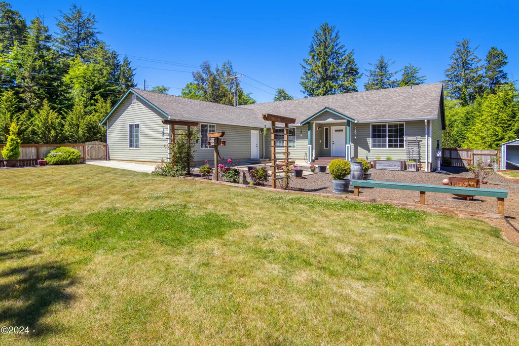 Step into a home designed for contemporary living and ease. This 3-bedroom, 2-bathroom haven features a spacious primary bedroom with a walk-in closet and en-suite bath making it your serene sanctuary. The large kitchen, with two pantries and dining room provide an ideal space for both culinary creations and gatherings. A beautiful view from every window of your private grounds. The attached, oversized two car garage adds convenience while the low-maintenance landscaping ensures that your outdoor spaces require minimal upkeep, allowing you to relax and relish every moment of your new home. With nearly an acre of land in this quiet neighborhood, there is plenty of room to add a shop, or customized deck for entertaining. All of this within a short walk to the famous Seal Rock Beach.