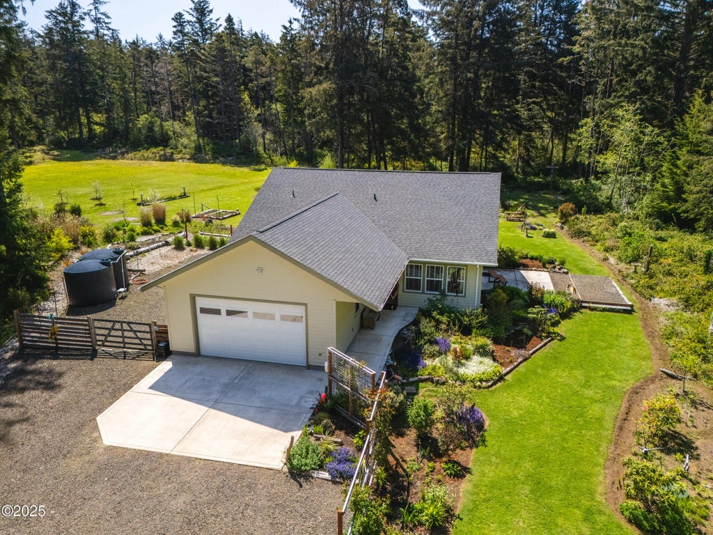 A pristine, truly turnkey coastal gem just minutes from the ocean, nestled in the woods on a dead end street. This spotless home features an open floor plan and immaculate interior, showcasing true pride of ownership. Truly a private serene setting. A custom self filling 5,000 gallon rainwater collection system for irrigation. Raised beds for vegetable gardening along with perennial beds and a variety of fruit trees, ornamentals and edible berries. A rare blend of functionality, sustainability, and coastal comfort, move in ready. Protected from the coastal winds and out of the fog belt for summer gardening! Must experience and explore what this home and property has to offer.