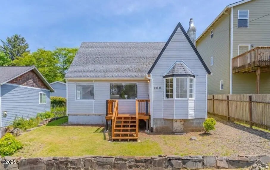Great value in the heart of Lincoln City! Built in 1944, this charming 2BR, 1.5 bath, 1,216 sq ft gem offers laminated on main & hardwood floors upstairs, vintage charm, and modern upkeep. Upstairs BR with built-ins doubles as office/flex space. Oversized lot with detached 2-car garage on separate tax lot—great investment potential. Some interior updates done prior to current ownership. Close to Lincoln City outlet mall, beach access, and restaurants. Don't miss this gem!
