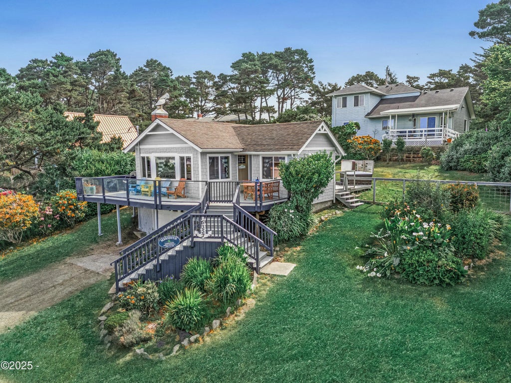 Cozy Beach Cottage with Ocean Views - Just One Block from the Sand! This charming 2-bedroom, 2-bath home in Waldport is your perfect coastal escape. Enjoy beautiful ocean views from both the front and back spacious decks, complete with a hot tub—perfect for unwinding after a day at the beach. The fully fenced backyard is ideal for pets, outdoor dining, or relaxing in privacy. Additional features include a one-car garage and a multi-purpose storage shed—great for tools, beach gear, or hobbies. Located just one block from beach access, this home is a rare blend of comfort, charm, and coastal convenience. Home comes turnkey.