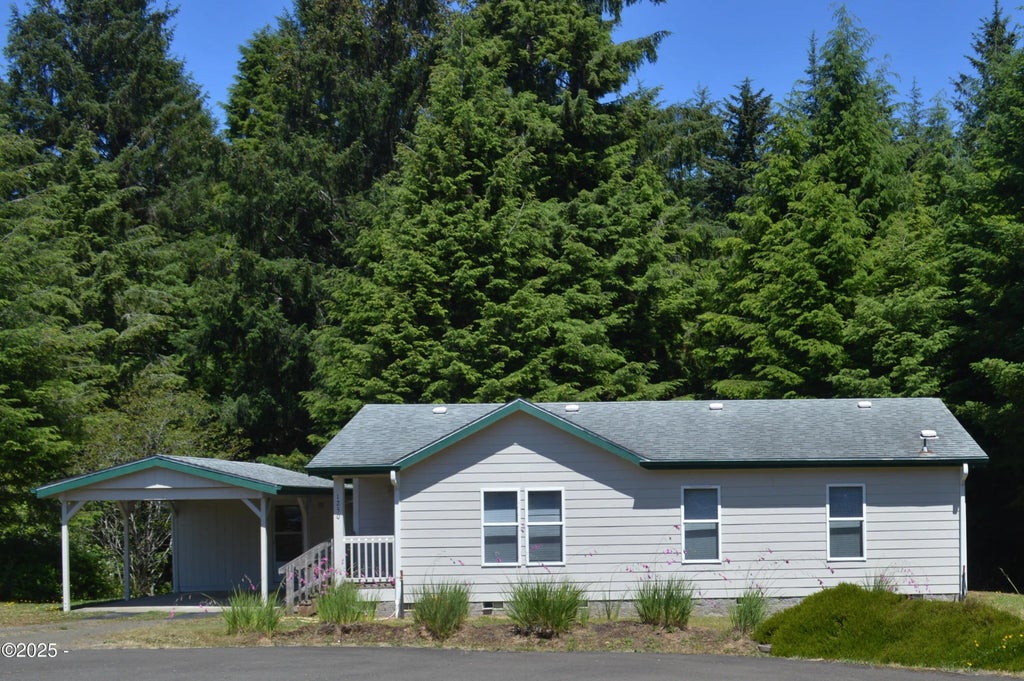Opportunity is knocking with a sweet manufacture home located on a gorgeous lot of .88 acres, zoned R-3, with the possibilities to develop the second lot. Pride of ownership shows in this well-kept, 2 bedroom 2 bath home, definitely move in ready with new luxury vinyl flooring installed throughout. The vaulted ceiling and plenty of windows, makes this home bright and cheerful, even on those dark stormy days. The side yard is a park-like beauty with mature beautiful pines, on a gentle sloping lot that extends all the way to SE Alsea Way. In the back yard of the house... you will find a magical forested area. This beautiful property has so much to offer, and it is priced to sell.