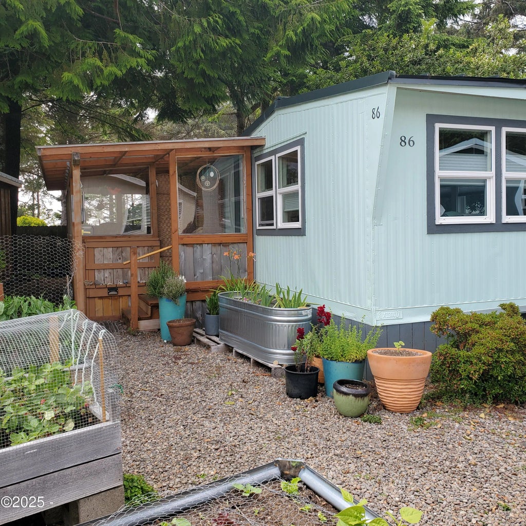 Nicely kept home on leased land. It is move-in ready and includes all appliances. Seller's pride includes installing a new roof in 2023, replacing subfloor and flooring, adding butcher block kitchen countertops, and a shed for additional storage. The enclosed porch offers outdoor living year-round.