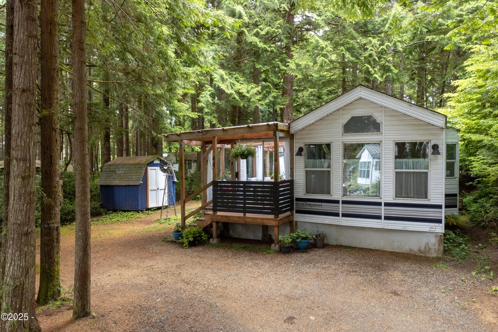 This charming 1 bedroom, 1 bath tiny home is situated just blocks away from miles of sandy beach on the Central Oregon Coast. Corner lot with great parking and a shed & firepit. The living area has been expanded with an enclosed 316 sq ft porch, providing plenty of space to relax and entertain. The home is clean, cute, move-in ready and comes fully furnished w/newer flooring, interior paint, a stainless steel gas line, new tankless H2O heater, new interior paint, standalone electrical, and a new faucet & sewer line. Willark Park is a lovely wooded enclave with a community center and laundry facilities. Located just a couple of miles north of the charming town of Depoe Bay, with its award-winning restaurants, shops, and fishing opportunities, and only blocks away from a grocery store
