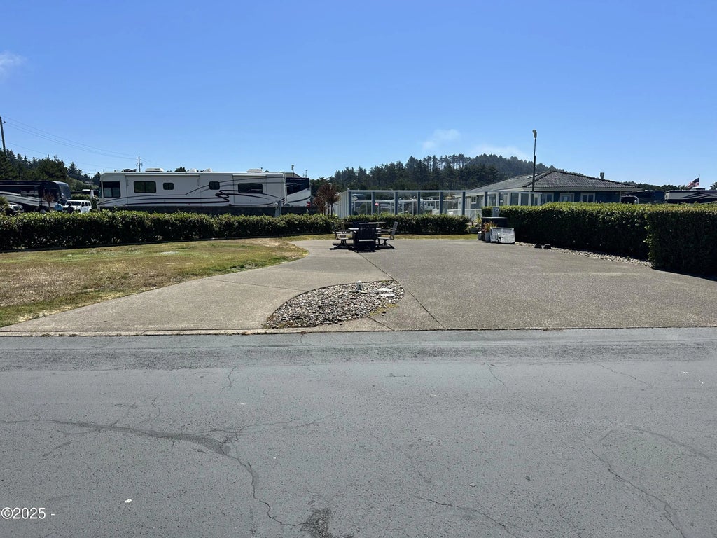 Back-in Lot. Huge lot with split drive way for pull-car. Hedges all around the lot and large grass area. Plenty of room to build your dream outdoor living. conveniently located near the outdoor pool and spa, laundry facility. Pacific Shores Motorcoach Resort is located on a bluff overlooking the Pacific Ocean and has a breath-taking lighthouse view. Nature walking trails through the woods and private access to our uncrowded beautifully photogenic beach. A large clubhouse and owner's only lounge, gym and kitchen. Indoor and outdoor pools and spas along with our hot sauna steam room.