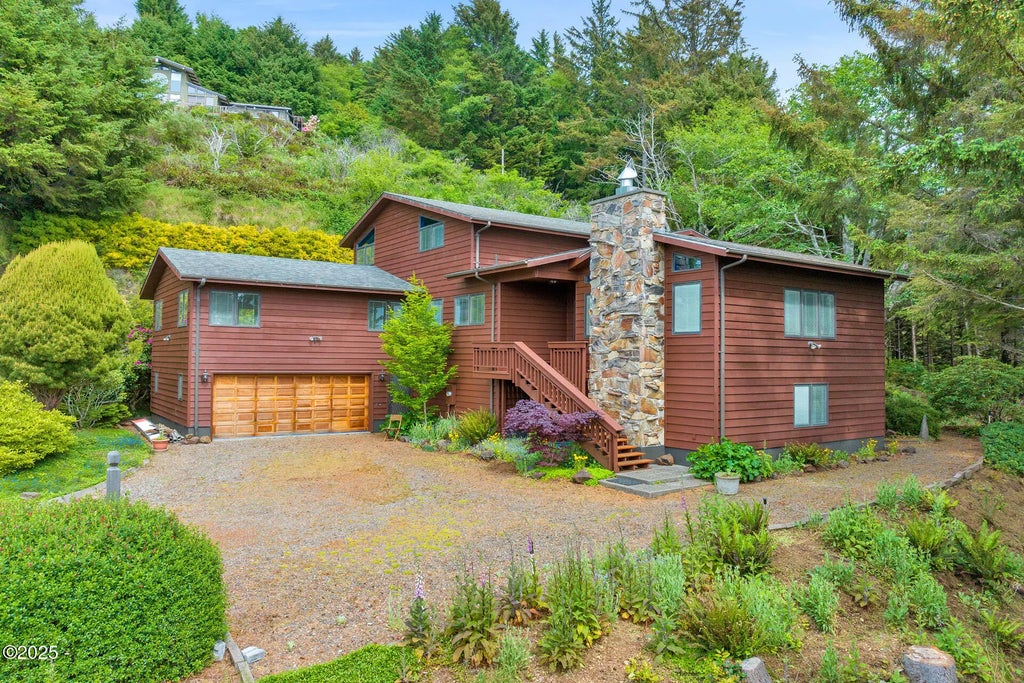 Situated above the scenic town of Yachats, this exceptional residence offers sweeping views of the Pacific Ocean coastline. With 5,807 square feet of living space the home provides a versatile layout suitable for both relaxation and social gatherings. The property offers five bedrooms, two full bathrooms, and two half baths, accommodating both family and guests comfortably. The lower-level recreation room offers flexible options for use such as a home theater, gym, or playroom. Set on an end-of the-road .67-acre lot, privacy is assured. The home will require updates to meet the preferences of its future owner, offering a unique opportunity to personalize this coastal retreat.