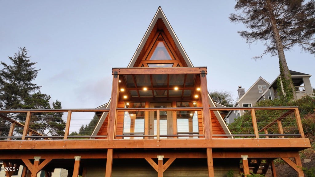 For those drawn to coastal serenity and forested escapes, this beautifully restored iconic A-frame is a masterwork of craftsmanship and design. Nestled where the forest meets the sea, this serene retreat merges modern updates with timeless natural beauty. Thoughtfully curated with locally milled, hand-selected woods, the home celebrates Oregon's rich natural resources and artisanal heritage. With 2 bedrooms and 2 bathrooms, the design seamlessly brings the outdoors in. Just steps from private beach access, your living space becomes the sunset as it slips beyond the renowned Ghost Forest. Soaring, floor-to-ceiling windows frame awe-inspiring views of Neskowin's South Beach and dramatic basalt cliffs, a front-row seat to the Pacific's daily performance.