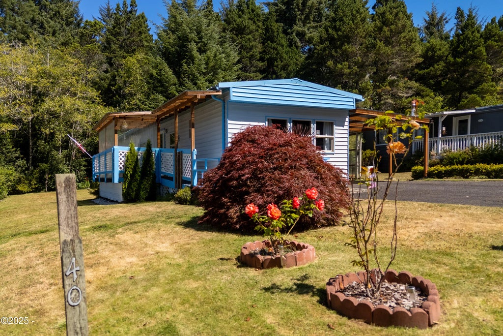 Space 40 in Driftwood Village, a 55+ community. This 854 sq ft, 2-bed, 1.5-bath 1974 manufactured home is meticulously maintained with numerous updates (extensive list in documents). Features Pioneer mini-split A/C & heat, updated kitchen with newer counters, refreshed baths and flooring, vinyl windows, metal roof, newer covered front porch, and 2020 vapor barrier throughout. Includes extra-deep enclosed carport, two storage sheds, and level lot above flood/tsunami zones, just 1 block from ocean access. 745/mo space rent covers general cable, park reserves, common area maintenance, & sewage. Water is 25+/mo. Electricity, garbage, and WiFi are owners responsibility. Park approval required within 10 business days of acceptance.