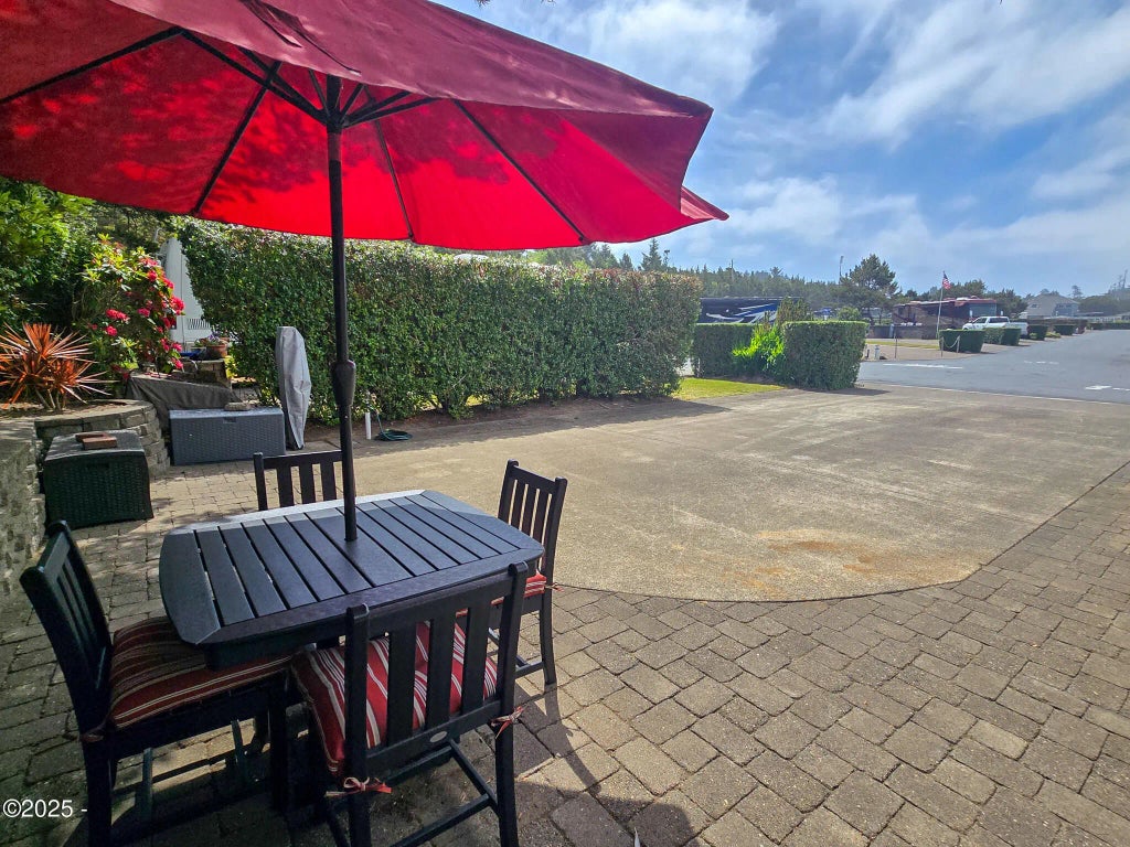 Come enjoy the Oregon Coast at this gorgeous oceanfront resort! This lot is tucked against the north side of the property, and is one of the most wind protected areas of the sprawling Pacific Shores Motorcoach Resort. Offering an expanded patio, built in kitchen and storage, along with BBQ and a pond feature that needs a little love to restore it to its former peaceful glory, this space is just waiting for you to call it home. Pacific Shores offers indoor and outdoor pools and spas, saunas, owners-only lounge, kitchen, and gym, plus two laundry rooms. Additionally, you have access to walking trails, pickleball courts, and private beach access to miles of sandy shores.