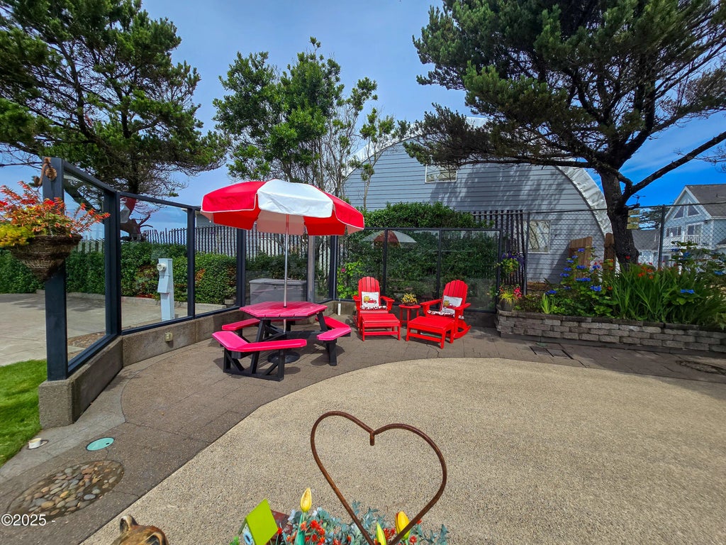 Here is your chance to own one of the desirable lots located on the ''windless wall'' of the resort! Glass windscreen, extended sitting area for entertaining, seasonal ocean views, lighthouse, and forest view. Near walking trails to the beach. This resort boasts an owners only lounge, kitchen, and gym, laundry facilities, lovely walking paths, and indoor and outdoor swimming pools, saunas and spas, and private beach access! The resort is rated 10•10•10 by Good Sam.
