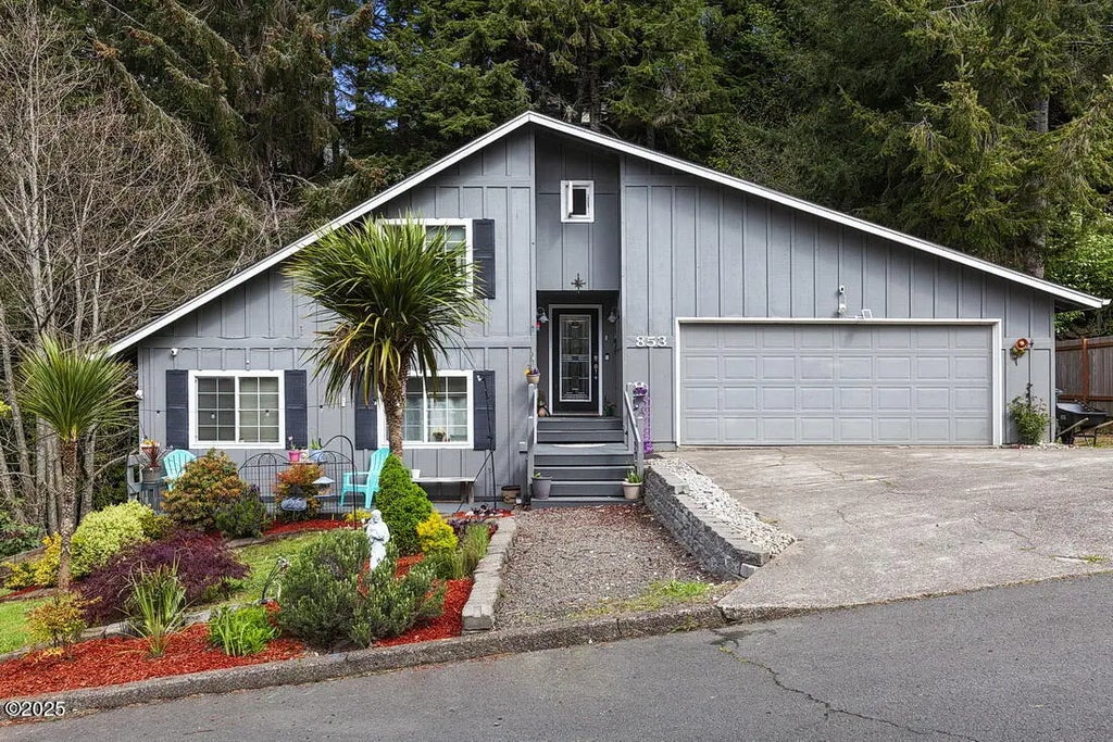 Spacious 4 bed, 2 bath home with 2,228 sq ft of living space in a prime location—just a short trail walk to Agate Beach for surf, beach walks, and sunsets. Big Creek Reservoir and Park are just minutes away, great for paddling or easy hikes. Inside you'll find vaulted ceilings, a sauna, large walk-in closet, and a full workout space with equipment included. Stay warm with both a pellet stove and a wood stove. Fully paid-off solar panels help keep energy costs low. A new 50-year roof (2022), covered patio, and a home warranty included at no cost to buyers.