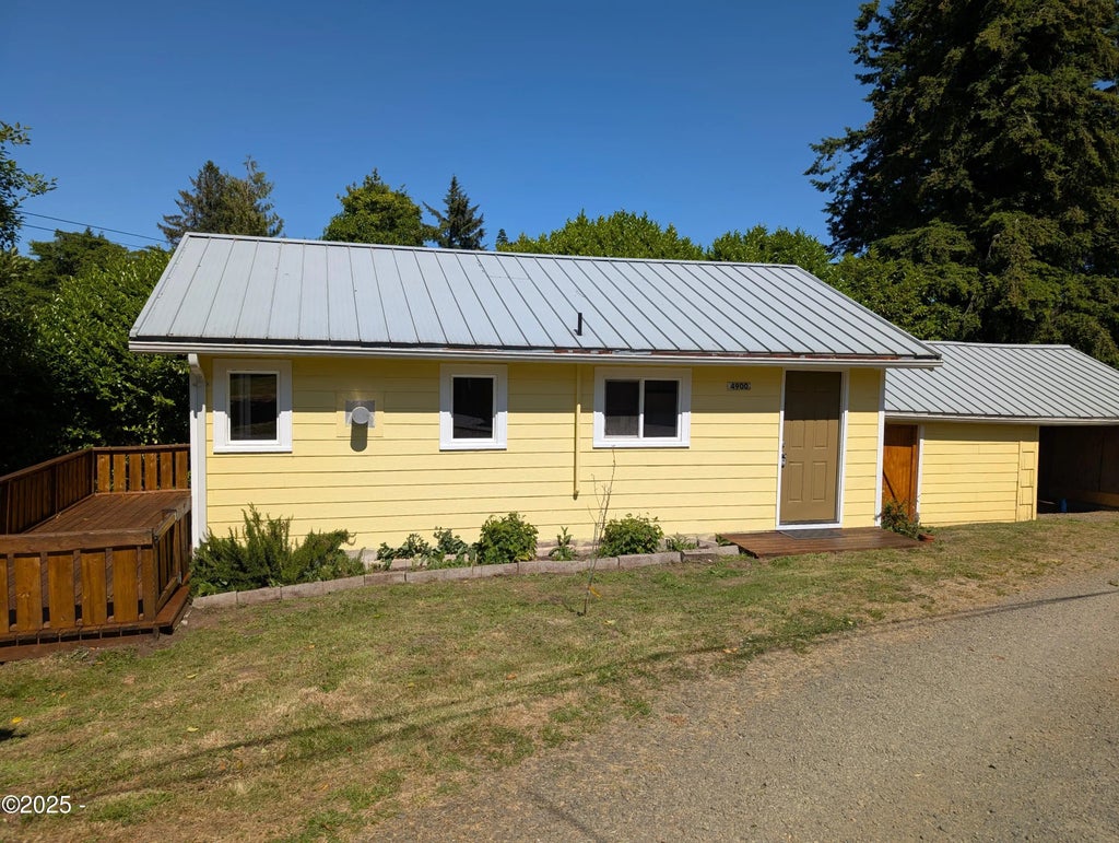 Neotsu corner lot cottage for sale! This charming single-level home offers 2 bedrooms, 1 bathroom, a large deck, gas fireplace, gas cooking range, secure shop, carport, and 4-car parking area. Spacious front and side yards provide great opportunity for gardening and gatherings. Enjoy the natural space with shade-offering alders, several fruit saplings, established raspberry and blueberry plants, and a homemade garden plot. New exterior siding and paint, with hand-made wooden shop door. Select interior areas received new paint jobs and trim as well. Short walk to community lake access (Pictured). This lovely home's prime location puts you within minutes of the beach, casino, golfing, parks, Devil's Lake, restaurants, and shopping in Lincoln City. Ideal as an investment or a full-time residence. Seller's Agent is related to Seller.