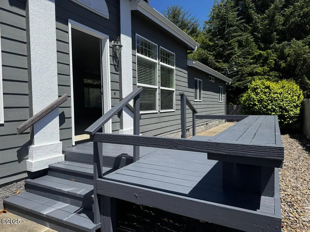 Enjoy comfort and convenience in Longview Hills, Newport's top 55+ community. This move-in ready 2005 home offers 1,620 sq ft, 3 bedrooms, 2 baths, and a large garage. Appliances, washer/dryer, walk-in closets, and window coverings included. Relax with forest views and ocean breezes or join friends at the clubhouse and trails. Above the tsunami zone, yet minutes from shops and the lighthouse. Space rent 755/month; park approval required.