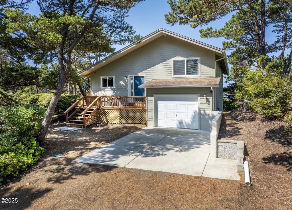 Your Coastal Retreat Awaits! Located just 2 miles south of Seal Rock shops and eateries, this Beautifully updated home with Ocean Views is nestled in a small neighborhood with Dedicated Beach Access! Sold Fully Furnished and Turnkey! Featuring Vaulted Ceilings, an open-concept layout, and an abundance of natural light. Enjoy daily sunsets out on the deck, or cozied up by the fireplace. The kitchen boasts granite countertops, bamboo floors and stainless steel appliances. The main living spaces and two west facing bedrooms have ocean views. Updates include new siding, interior and exterior paint, new carpet, updated bathrooms, a paved driveway, a widened road for additional parking, a new deck, and more! 150 dollars/year paid to The Orcas Group LLC for maintenance of beach access trail.
