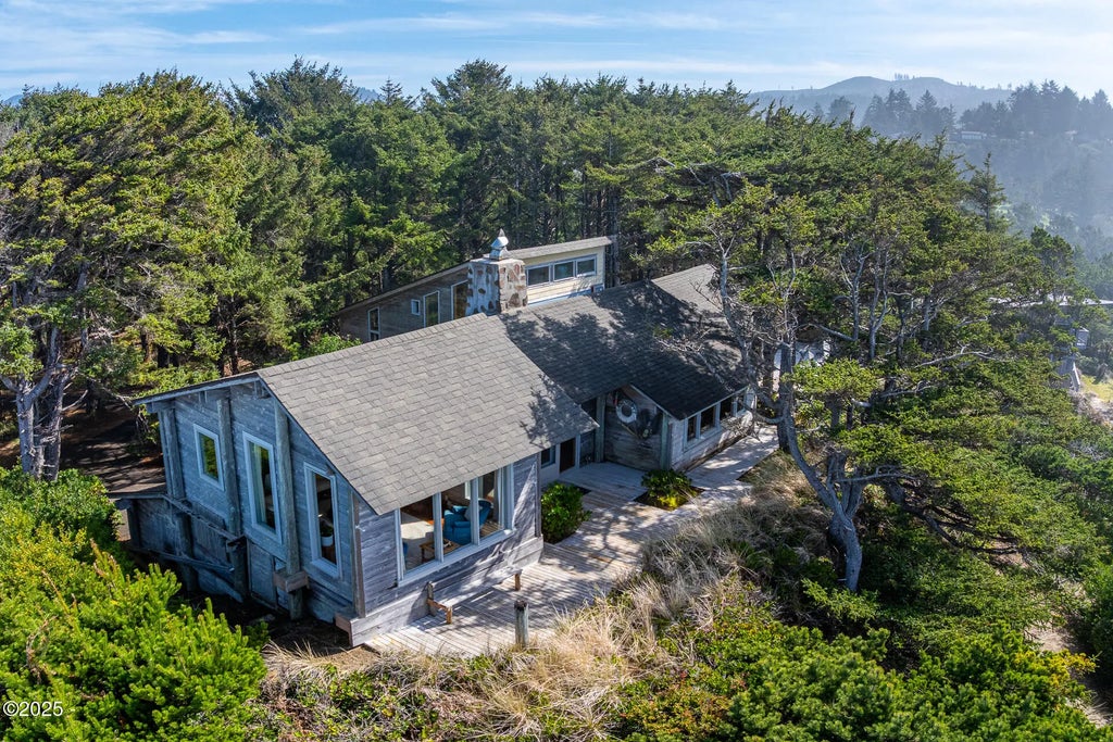 Nestled in the tranquil, gated Salishan neighborhood, this exceptional home offers a rare blend of privacy, luxury, and breathtaking ocean views. Elevated amongst the trees, the residence is a stunning example of contemporary Northwest cabin design, seamlessly integrating with the natural beauty of its surroundings. As you enter through the striking atrium, you are immediately greeted by a sense of harmony between the indoor living spaces and the coastal landscape. The expansive living areas feature a grand rock fireplace, elegant wood finishes, and oversized windows that flood the home with natural light, all while framing the magnificent views beyond. Set on a generous .36-acre lot, this home provides a perfect balance of seclusion and space, with private, serene decks that invite you to unwind and soak in the beauty of the outdoors. A short stroll from your door takes you to the community pool, marketplace, shops, and beach, offering endless opportunities for both relaxation and outdoor adventures. Salishan offers a wealth of amenities, including a world-class golf course, tennis and basketball courts, scenic walking trails, a luxurious spa, and a variety of restaurants. Whether you're seeking a peaceful coastal retreat or a vibrant community to call home, this property offers the ideal combination of charm, comfort, and naturean extraordinary place for enjoyment and coastal living at its finest.