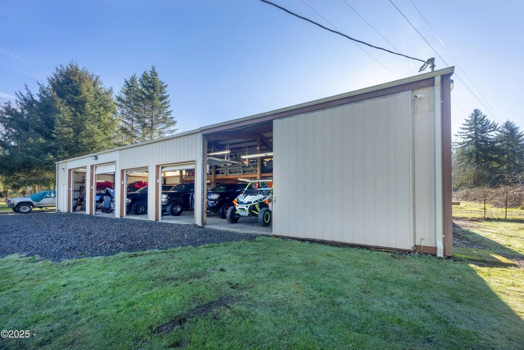 For those with a love of outdoor hobbies, the property is well-equipped. The 2-stall attached garage offers ample space for vehicles, while the separate shop includes 4 additional stalls, ideal for storing equipment or working on projects. A sliding barn door opens to a spacious work area or man cave, providing versatility for both work and play. The shop also features tons of loft space for additional storage, maximizing the property's functionality.