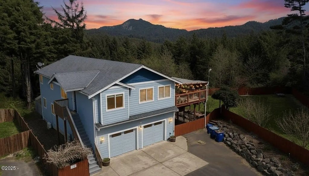 Live sustainably in this stunning 3BD/3BA retreat with whitewater ocean views, a direct line of sight to Otter Rock, and tranquil forest and territorial mountain vistas. Just a short walk to Beverly Beach State Park, this home features a 31-panel net-metered solar system, 32kWh battery storage, EV charging, and a heat pump water heater for added efficiency. Plumbed with propane for the kitchen stove and BBQ hookup on the deck. The primary suite includes dual walk-in closets. Enjoy your private hot tub, and harvest from your own blueberries, apple trees, peach tree, kiwis, and more. Spacious, light-filled layout perfect for coastal living with modern efficiency. Quiet, scenic neighborhood just minutes from Newport's beaches, trails, and restaurants. One seller is a licensed agent in Oregon
