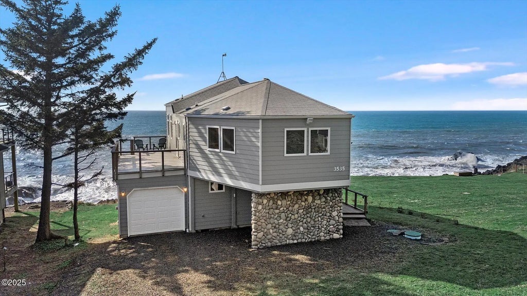 Crashing Surf and Ocean Views from both upper and lower levels of this unique Oceanfront Contemporary home. Imagine whale watching while playing on your grassy yard. Cozy up to the fireplace and enjoy the mesmerizing ocean views on a rainy day. Main Level features an open floorplan and an Oceanfront Hot Tub Room-complete with Spa! Great Room on upper level with Panoramic Views, gas fireplace and wet bar. Bedroom and Bath on each level. Large Den on upper level with access to deck. Wrap-Around Decks on both levels. Exterior of home has been freshly painted. Complete remodel was done in 2009. Miroco is a small, quiet neighborhood with lots of charm. Close to sandy beaches and world class fishing. Easy access to restaurants & shopping in Depoe Bay and Newport. Live your Coastal Dream!