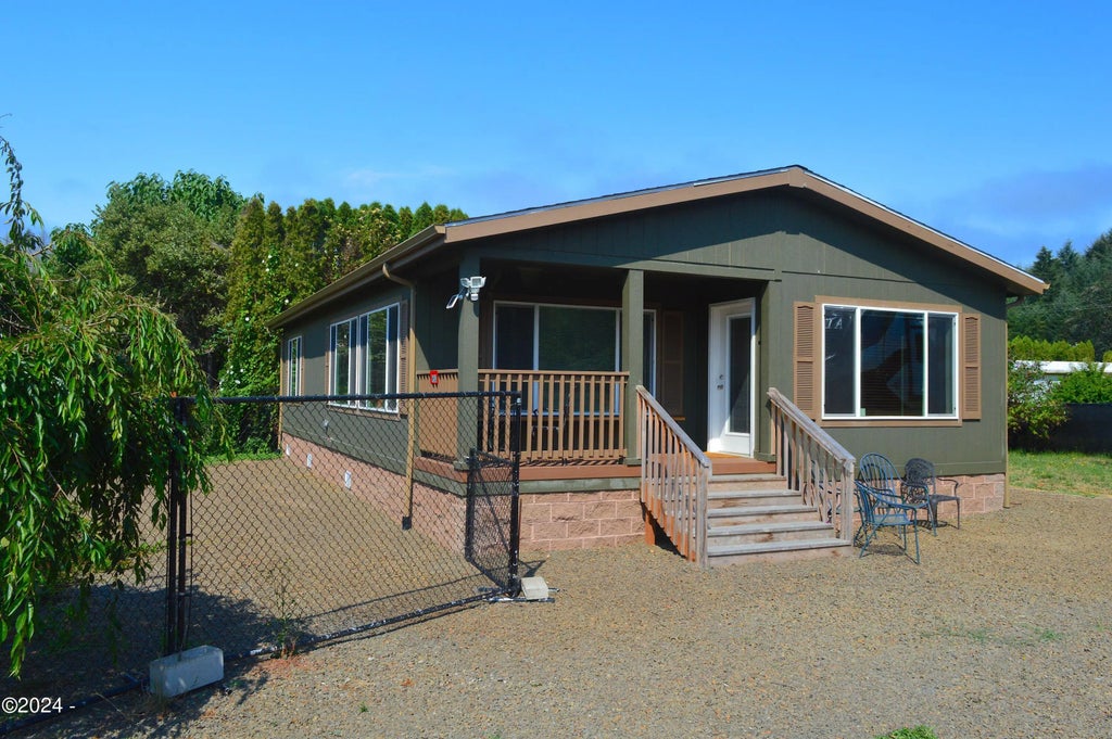 This 2023 charming coastal manufactured home is conveniently located in Otis with deeded access to the Salmon River and only 10 minutes to beach access. The 2 bedroom, 2 bath spacious 1231 sq ft open floor plan is ideal for full time living or a cozy vacation getaway. The extra large windows throughout fill it with natural light making the entire space very bright. You will appreciate the large island, stainless appliances and walk-in pantry as you prepare meals in the well designed kitchen. You will also enjoy the primary suite's oversized walk-in tile shower and guest bath's soaking tub/shower combination. The oversized corner lot has three driveways for easy access, plenty of parking and RV hook-up. (The 6' black cyclone fencing is not included with the sale of the home.)