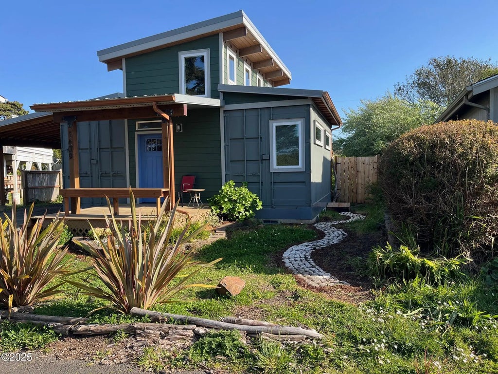 Modern Living, where Cozy meets Classic & the charm never fades small, sweet & stylish. Opening a Door to an Extraordinary Home, Come Discover the Art of Living in this Stylish Aesthetic custom crafted Container Home with second story stick built Loft area with views of the Painted skies. This home boast Craftsmanship through out, it wont disappoint you. A sweet outdoor private shower enclosed & nestled on a cozy deck adjacent to Cottage style ''She Shed'' sure to be a favorite spot surrounded by nature. Pull camper through the covered Carport and hook up to RV, water & septic & power. Nature surrounds this home just 2 doors West on the cul-de-sac is a Public Bench to view unlimited painted skies, rolling waves & Ocean life and 8 miles of unobstructed Pristine Beach a stones throw away