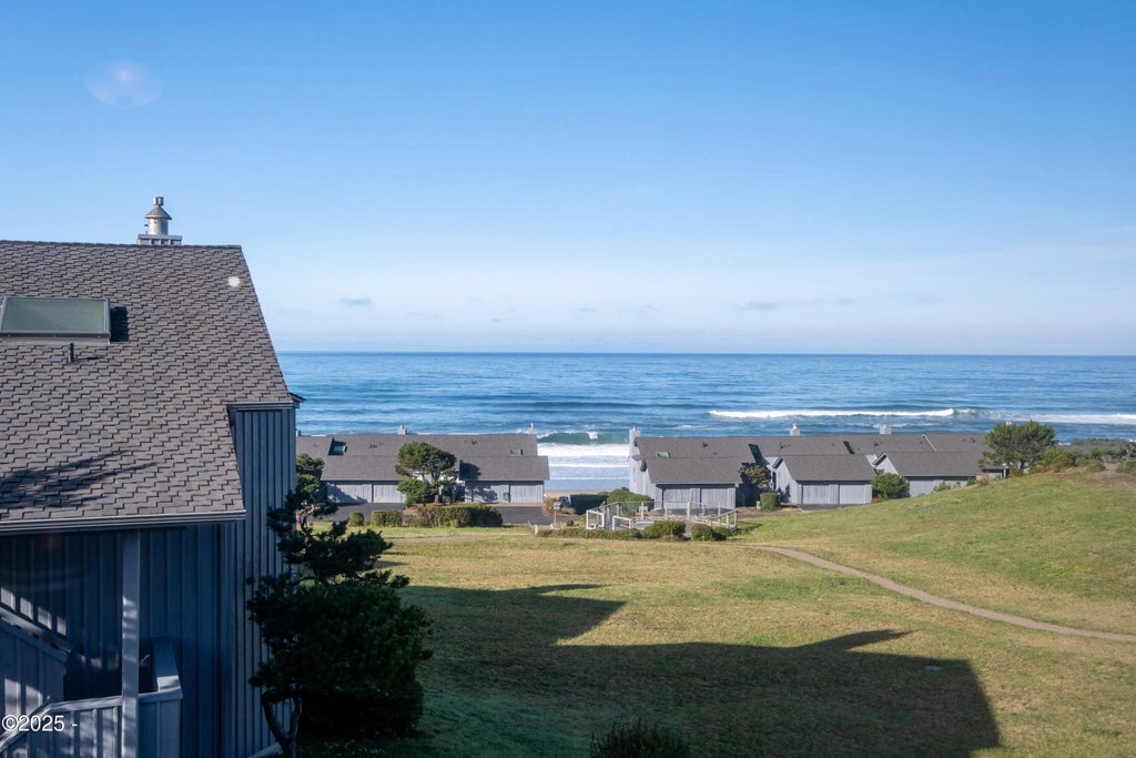 Ocean surf view in this light, bright, tastefully remodeled 2+ bedroom unit. It feels larger than the 1536 sq ft with soaring vaulted ceilings clad in warm cedar planks. Walk into the open kitchen with newer granite counter tops which offset the newer stainless steel appliances and neutral grey LVP flooring thru-out. Stacked stone accents the back of the eating bar and is echoed in the fireplace wall up to the ceiling with a new gas fireplace. The window seat in the dining area overlooks the ocean and meadow and the wall of windows out to the ocean view patio floods the living room with light. The primary is also open to the patio & ocean views while the primary bath features a new marble tiled shower stall & seat and the granite counters match the kitchen. See more ... Both bathrooms have newer showers and all new fixtures. A newer stacked washer/dryer are conveniently located in the hall closet. Upstairs is being used as a 3rd bedroom with even more beautiful surf views, a large walk-in closet and a unique storage alcove that made use of all available space to store everything you need within reach. This unit comes fully furnished in this lovely setting with access to a seasonal pool, tennis courts, a security gate and private beach access just a short walk through the meadow.